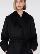 Cappotto midi a vestaglia MAXMARA in doppio drap di pura lana, caratterizzato da cappuccio ampio e linea avvolgente.