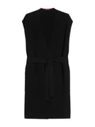 Gilet lungo MAXMARA in filato di viscosa stretch a punto tessuto con cintura da annodare in vita per evidenziare la silhouette.
