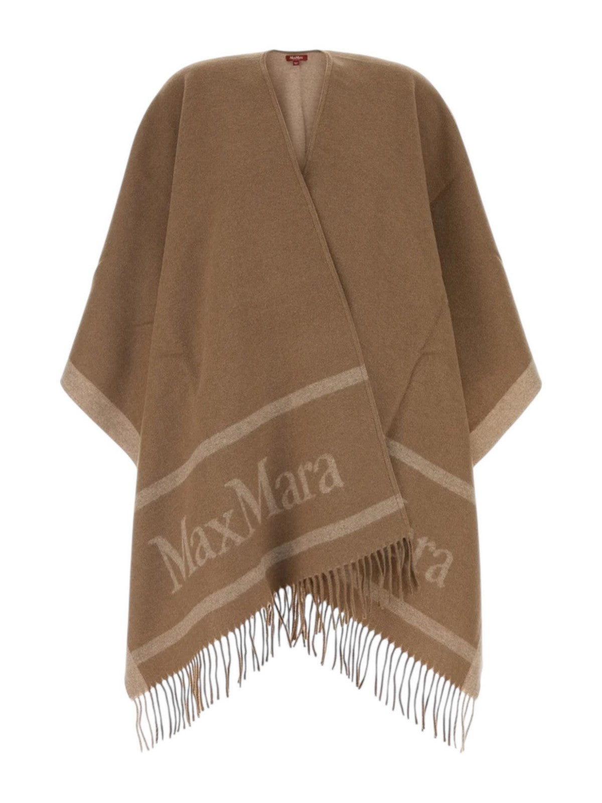 Mantella MAXMARA realizzata in pura lana caratterizzata da logo ricamato a contrasto sul fondo.