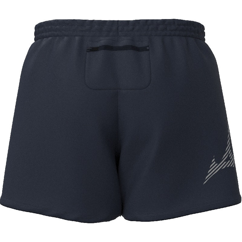 Pantaloncini running Mizuno unisex. Pantaloncini Mizuno da running 4.5 in tessuto esterno leggero e performante con interno traspirante, tasca posteriore con cerniera, dettagli riflettenti per una migliore visibilità durante la corsa notturna. Salbini articoli tecnici per lo sport è rivenditore ufficiale Mizuno .