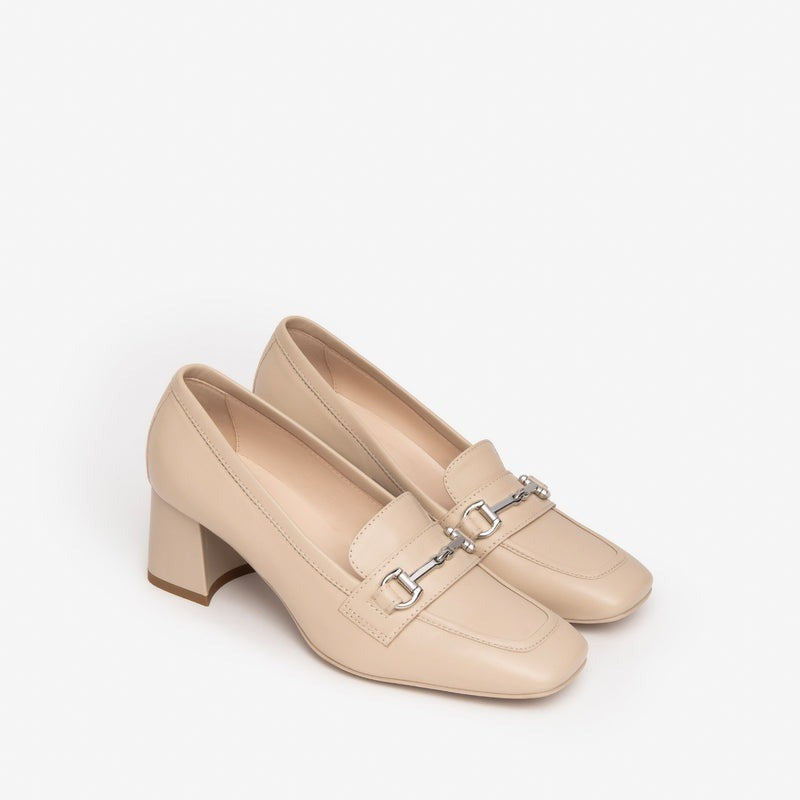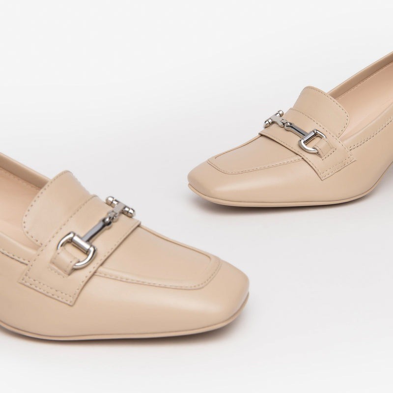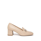 Eleganza e praticità si uniscono in questo mocassino dalla linea raffinata. Il modello E409471D presenta una pregiata tomaia in pelle liscia disponibile in tonalità corda, lino, beige o bianco, impreziosita da un morsetto metallico tono su tono. Il tacco a blocco di 5,5 cm garantisce stabilità e comfort anche per tutta la giornata, mentre la fodera e la soletta in pelle offrono un'ottima sensazione al piede. La suola in gomma antiscivolo rende perfetto questo modello per l'uso quotidiano. Prodotto interamente in Italia, esibisce il tricolore sul battistrada a sottolineare la qualità artigianale made in Italy