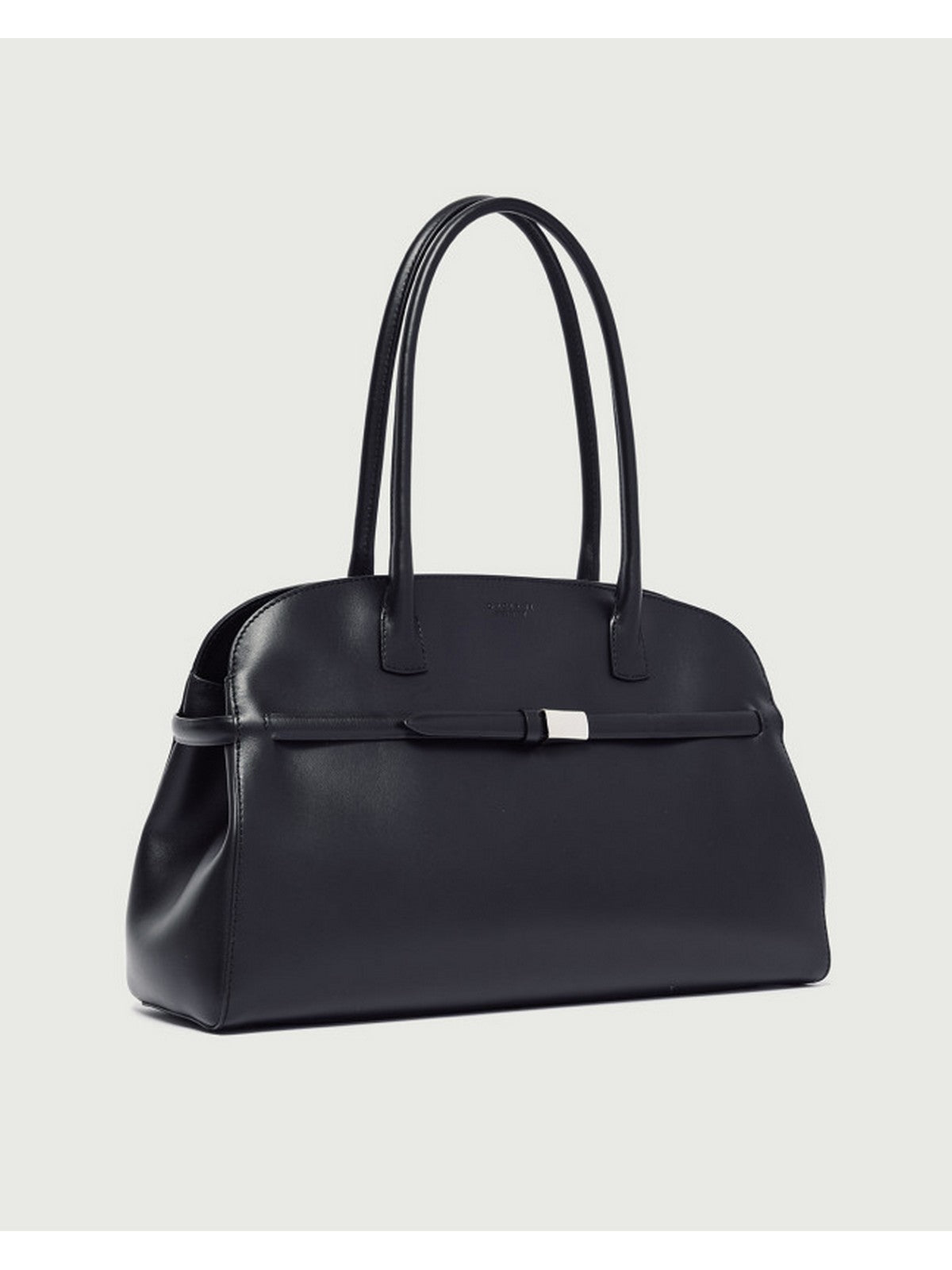 Aura Alba Large è una borsa a spalla in pelle liscia, una creazione dalle curve rotonde e il carattere seducente.