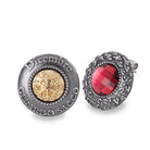 Orecchini a lobo in Argento 925/000 con simbolo del mese e pietra colore rosso. La coppia è realizzata secondo la nuova tendenza mismatched, con un orecchino diverso dall'altro, in modo da presentare da una parte il simbolo del mese, i fiocchi di neve in argento placcato Oro 24 kt, e sull'altro un cristallo sfaccettato rosso, colore dell'Inverno.