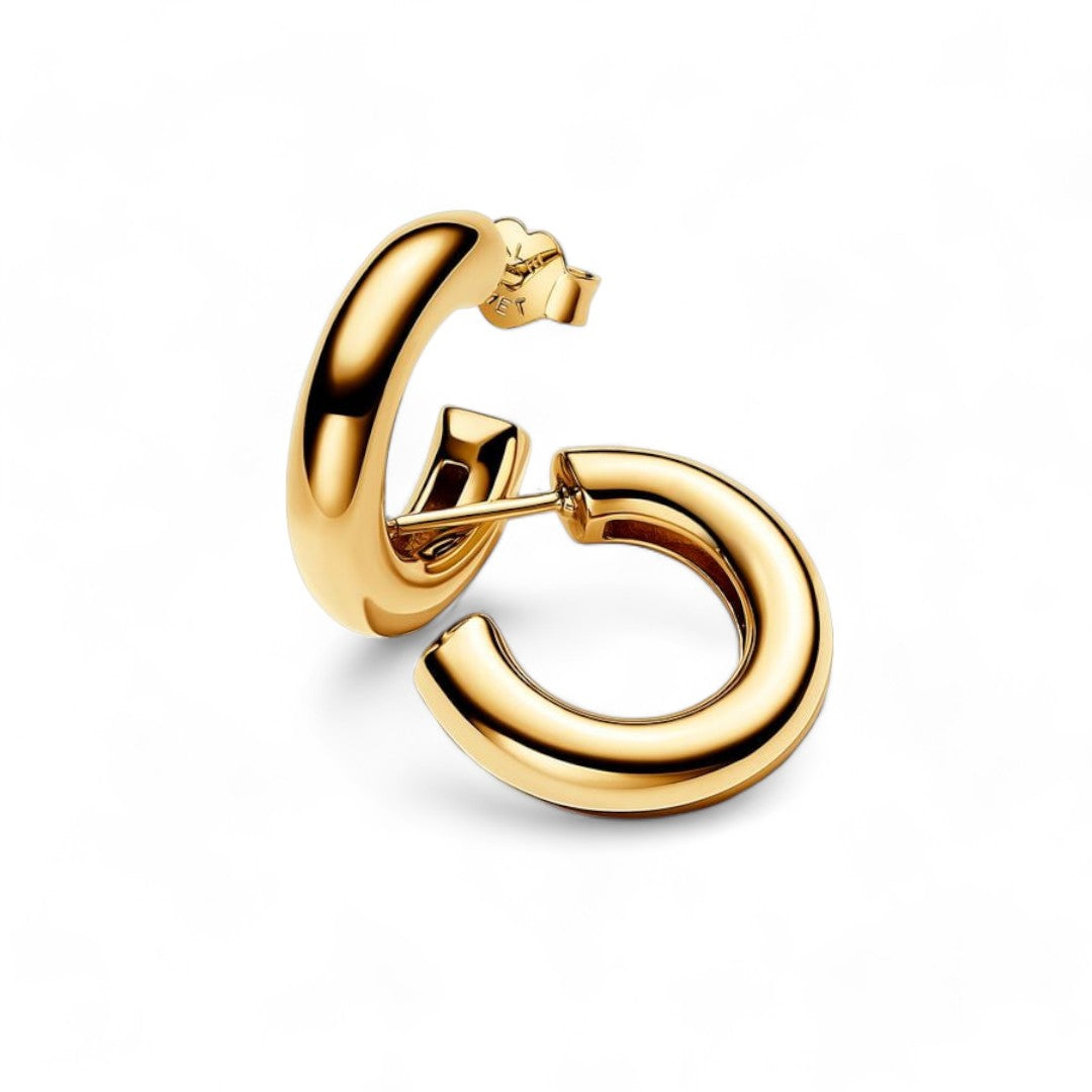 Esclusiva lega metallica con placcatura oro 14 carati; cerchio aperto rotondo.