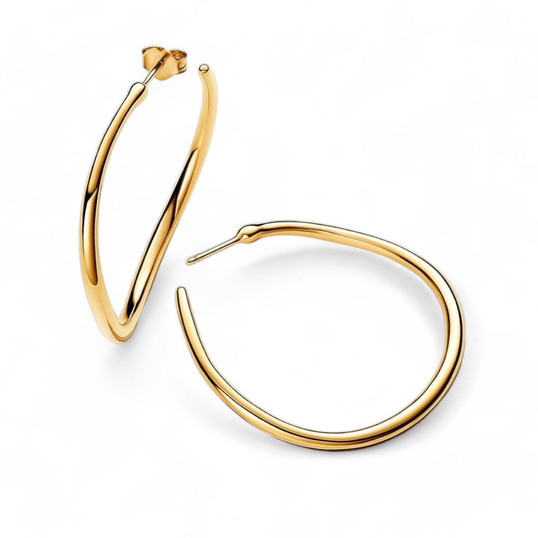 Esclusiva lega metallica con placcatura oro 14 carati; cerchi sottili aperti che riprendono le forme della natura; cerchio leggermente ondulato con profilo arrotondato che varia di spessore