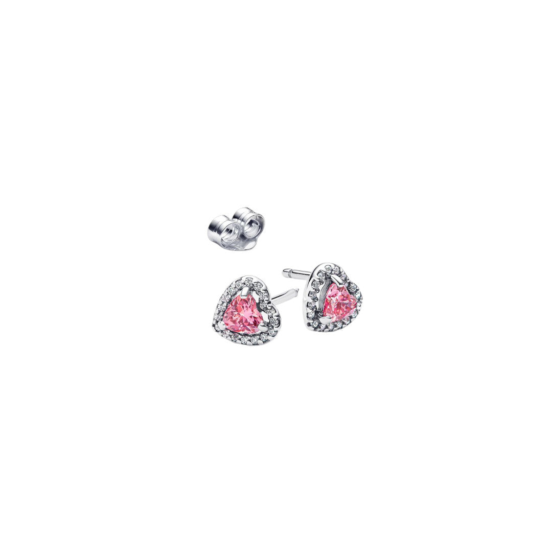 Orecchini Cuore in Rilievo in Argento Sterling 925 con zirconia cubica rosa