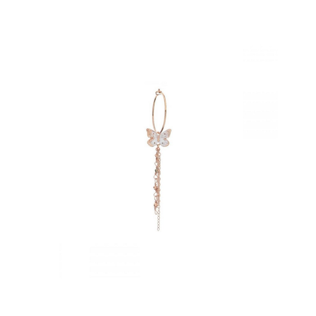 Orecchino a cerchio singolo della Collezione Le Farfalle realizzato in argento 925 con galvanica oro rosa ad alto spessore e resistenza.