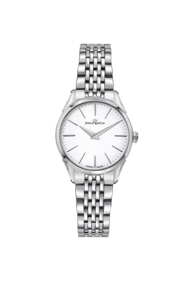 Esprimi il tuo stile unico con l'elegante orologio da donna della collezione Roma di Philip Watch. Con un design raffinato e femminile, questo orologio è un accessorio perfetto per completare il tuo look. La cassa in acciaio, con un diametro di 32 mm, dona un tocco di grazia al polso. Il quadrante argento bianco brillante crea un contrasto luminoso e sofisticato. Il cinturino in metallo color silver aggiunge un tocco di classe e si adatta comodamente al polso. Grazie al trattamento del vetro zaffiro, il quadrante rimane protetto da graffi e segni di usura nel tempo. Con una resistenza all'acqua di 5 ATM, puoi indossare l'orologio in diverse situazioni senza preoccupazioni. La fibbia a farfalla con pulsanti assicura una chiusura sicura e comoda. Con la garanzia ufficiale di 2 anni offerta da Philip Watch, puoi goderti la qualità e l'affidabilità di questo orologio. Acquista l'orologio da donna Philip Watch della collezione Roma e aggiungi un tocco di eleganza al tuo stile personale.
