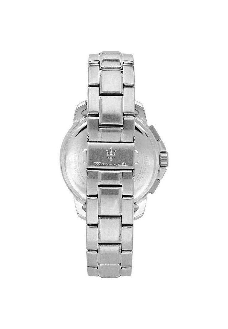Questo orologio Maserati ha una cassa in Inox con un diametro di 42 mm ed è dotato di un cinturino in Metallo. All'interno della cassa si trova un movimento di Miyota e l'orologio è dotato di un cristallo di Minerale.