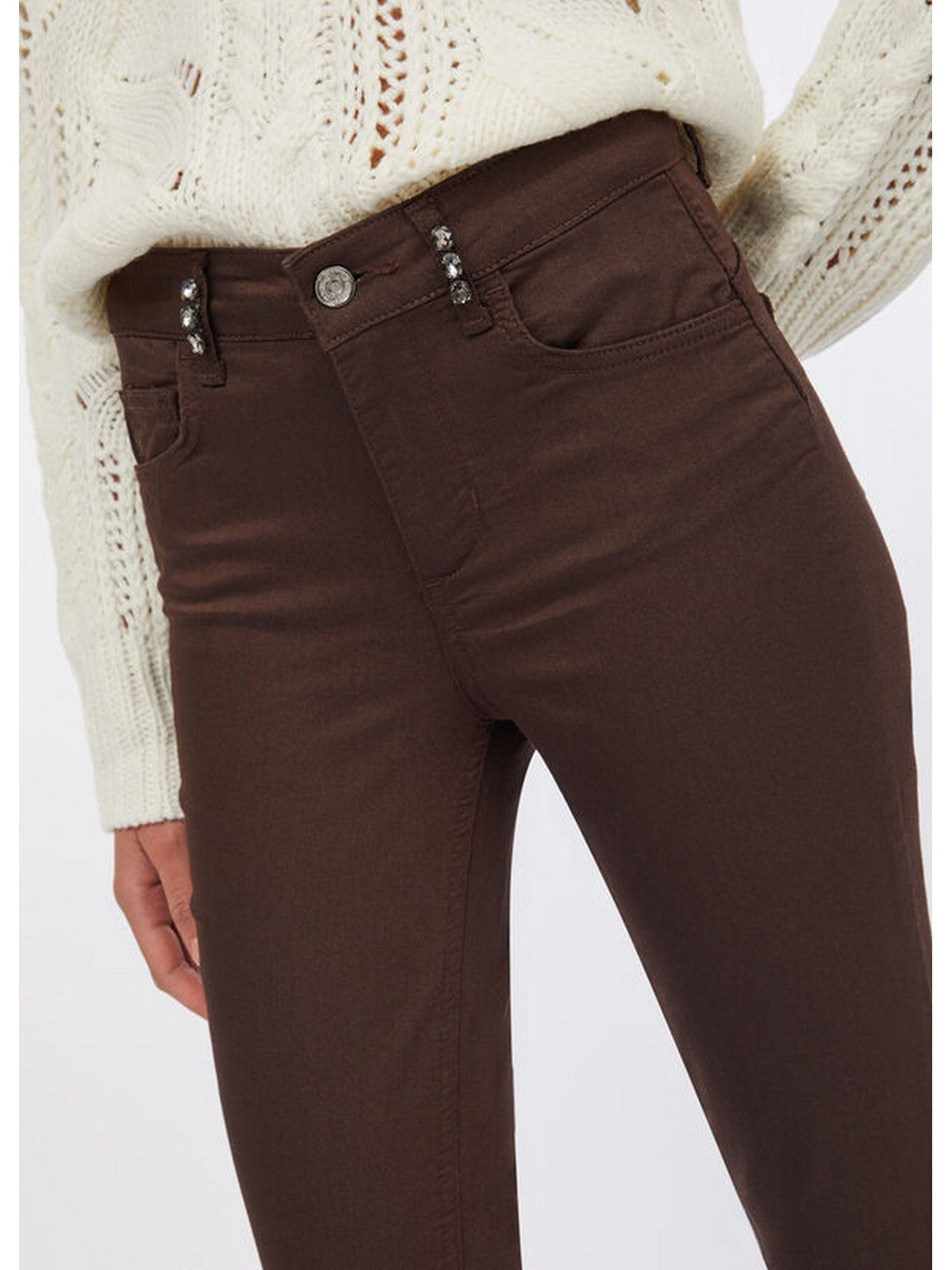 Pantaloni Donna Liu Jo - Pantaloni skinny con pietre gioiello - Marrone