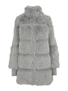 Cappotto fluffy PATRIZIA PEPE in pelliccia sintetica con polsi in maglia assicurano calore, mentre gli inserti in tessuto spalmato definiscono le maniche e il profilo della chiusura a bottoni.