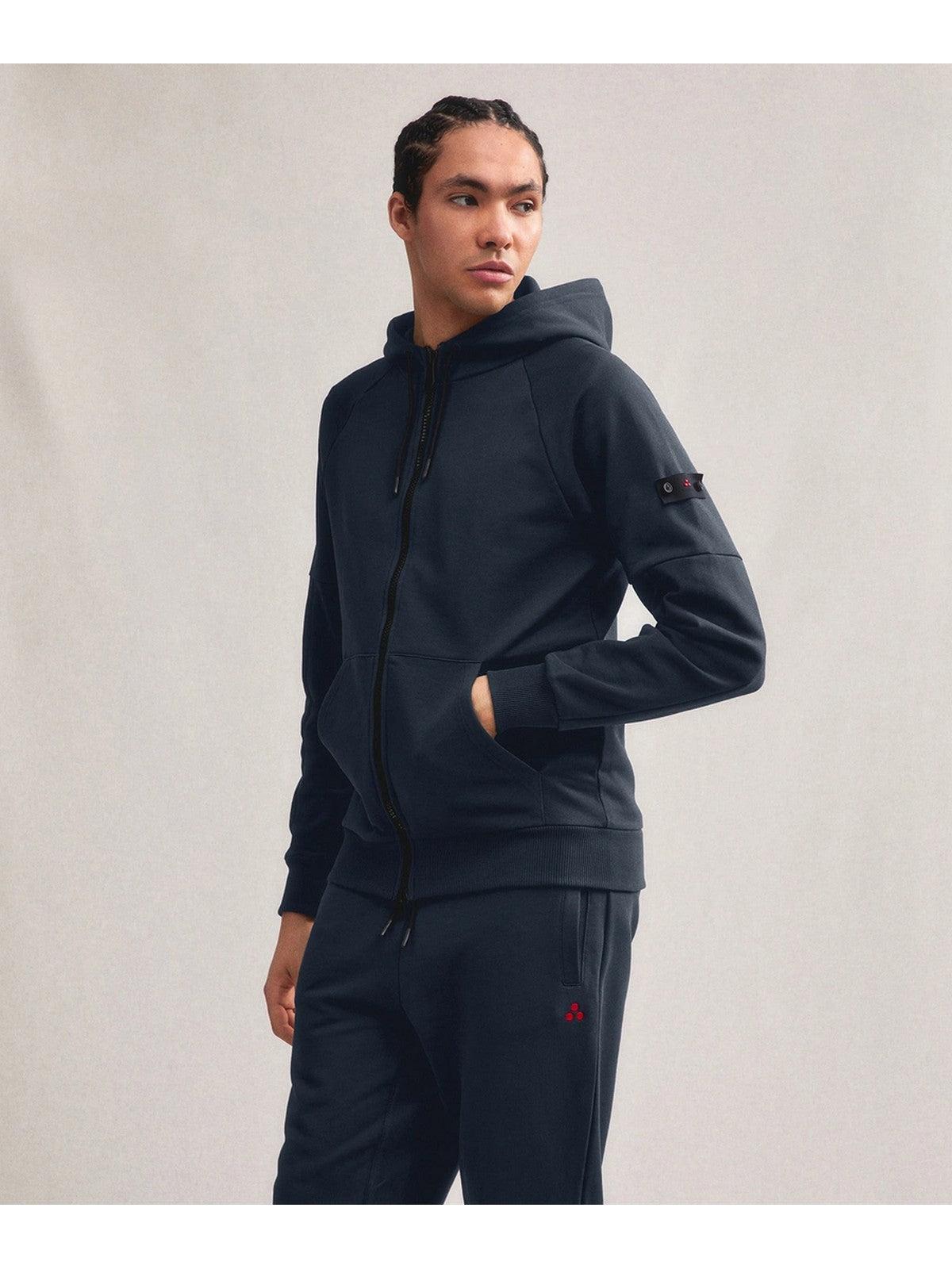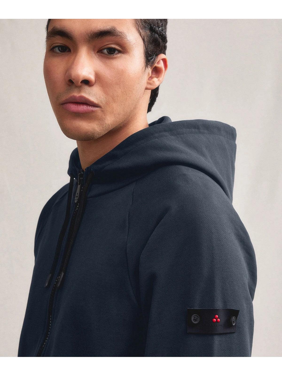 Felpa PEUTEREY in misto cotone. Collo con cappuccio con tiranti regolatori. Tasca a marsupio. Personalizzazione con logo Peuterey sulla manica sinistra, fissata con due bottoncini.