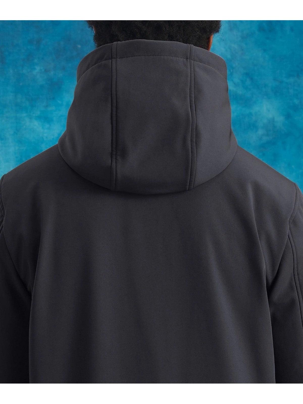 Trench PEUTEREY liscio e tecnico in tela bi-stretch di nylon accoppiata ad un morbido pile. Chiusura con zip centrale nera con doppio cursore. Ampio collo in piedi con cappuccio fisso e coulisse. Maniche lunghe con polsini elastici per una maggior tenuta al freddo e al vento. Tasche ai lati con zip.
