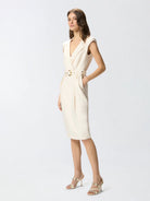 Abito midi PINKO realizzato in un tessuto panama che richiama l'aspetto rustico del lino.