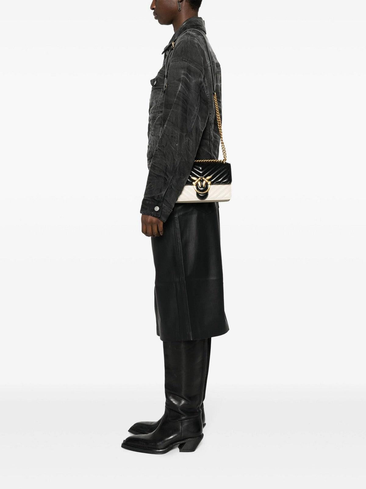 Borsa PINKO Mini Love Bag Icon in morbida pelle mano seta. Chiusura con baccello in pelle e borchie completata dall'iconica fibbia in metallo Love Birds Diamond Cut in metallo. Interno foderato in microfibra scamosciata con tasca a parete. Tre scomparti di cui uno con zip. Tracolla rimovibile combina la classica catena rotonda al pratico spallaccio in pelle regolabile.