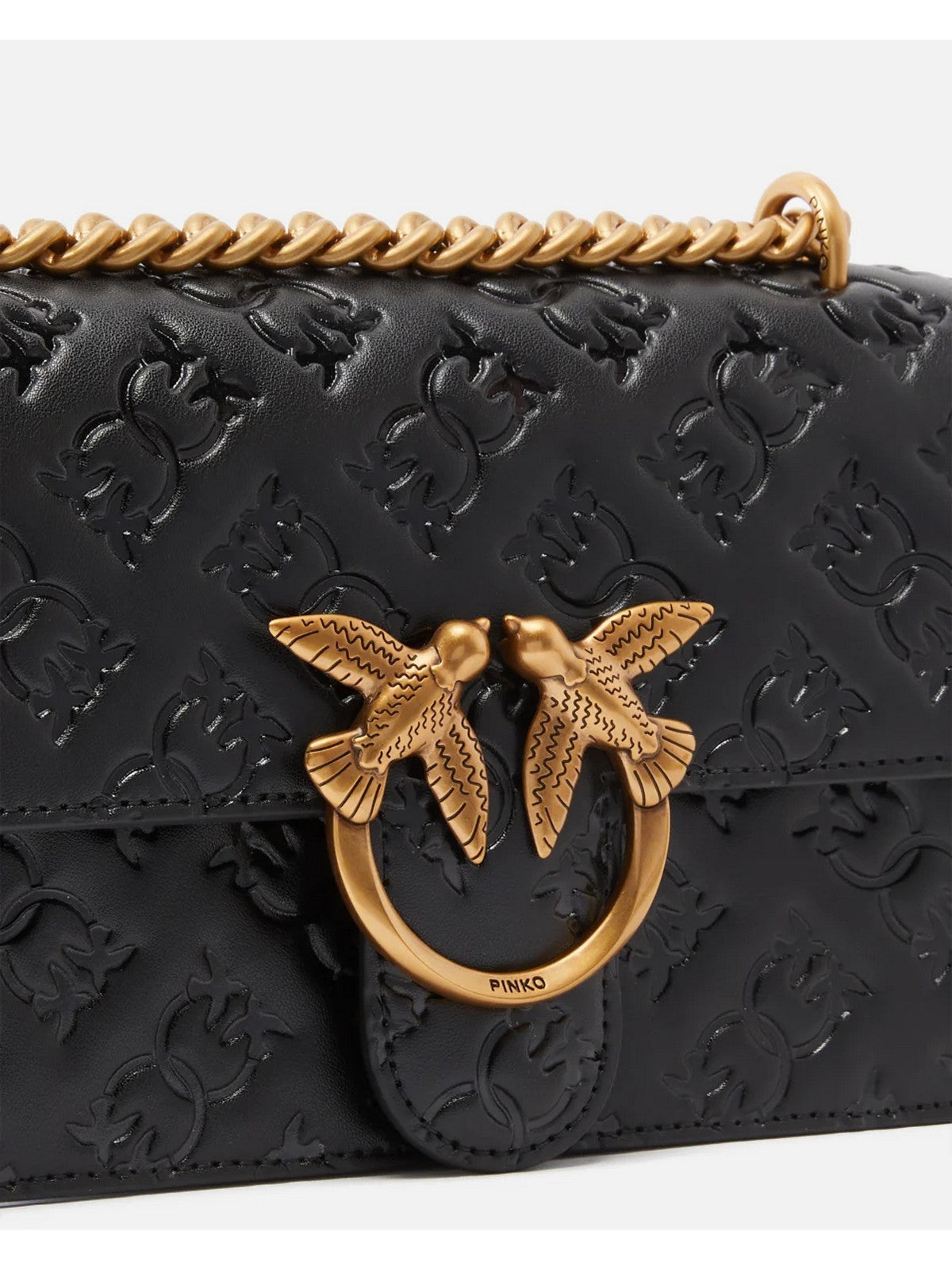 Borse a tracolla Donna Pinko - Borsa Love One Mini Dc Vitello Seta Logo Imprime - Nero