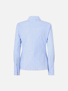 Camicia classica PINKO in popeline di puro cotone tinto in filo con disegno a righe verticali, Logo lettering PINKO jacquard inserito all'interno del motivo per un sottile contrasto.