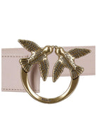 Cintura PINKO in morbida pelle mano seta da indossare alta in vita con fibbia Love Birds Diamond Cut in metallo. Altezza 4 cm
