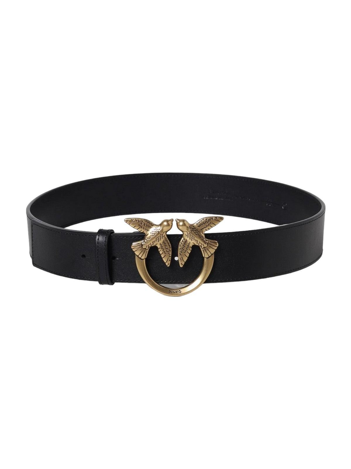 Cintura PINKO in morbida pelle mano seta da indossare alta in vita con fibbia Love Birds Diamond Cut in metallo. Altezza 4 cm