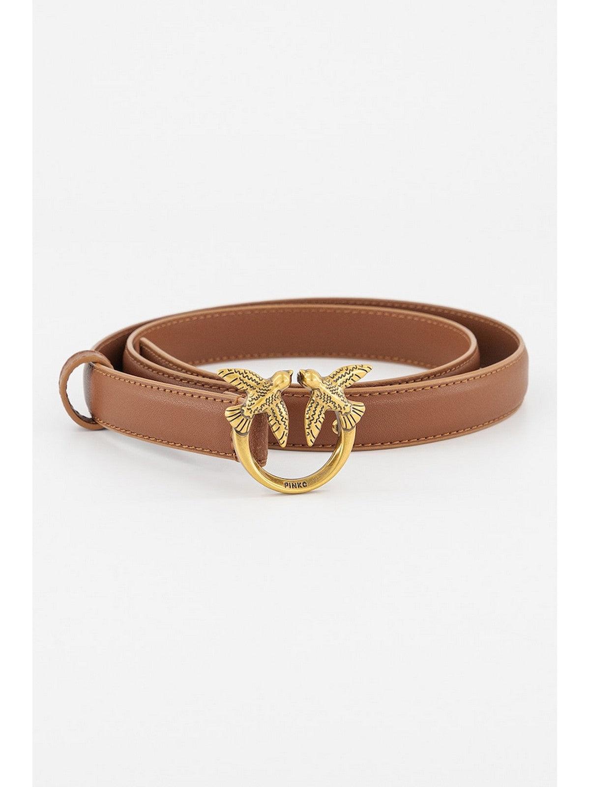 Cintura sottile PINKO in pelle mano seta con fibbia Love Birds Diamond Cut in metallo. Altezza 2cm