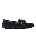Mocassino RALPH LAUREN in camoscio tinta unita con cuciture a contrasto. punta arrotondata. Lacci che passano intorno la scarpa e si annodano sul davanti. Suola dentellata.