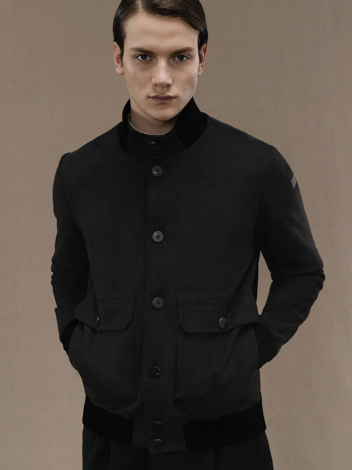 Giubbino uomo RRD dal tessuto tecnico eco suede a effetto nabuk, nero.