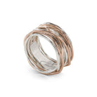 Tredici fili in Oro Rosa o Giallo 9kt e Argento 950 arricchito al Palladio si intrecciano armoniosamente per formare un anello unico e raffinato realizzato esclusivamente con materiali con certificazione etica.