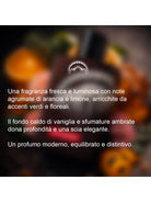 Fragranza fresca con note agrumate di arancia e limone, arricchito da accenti verdi e floreali.