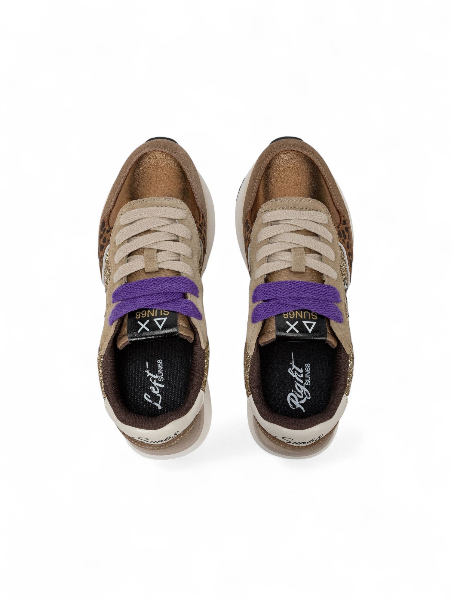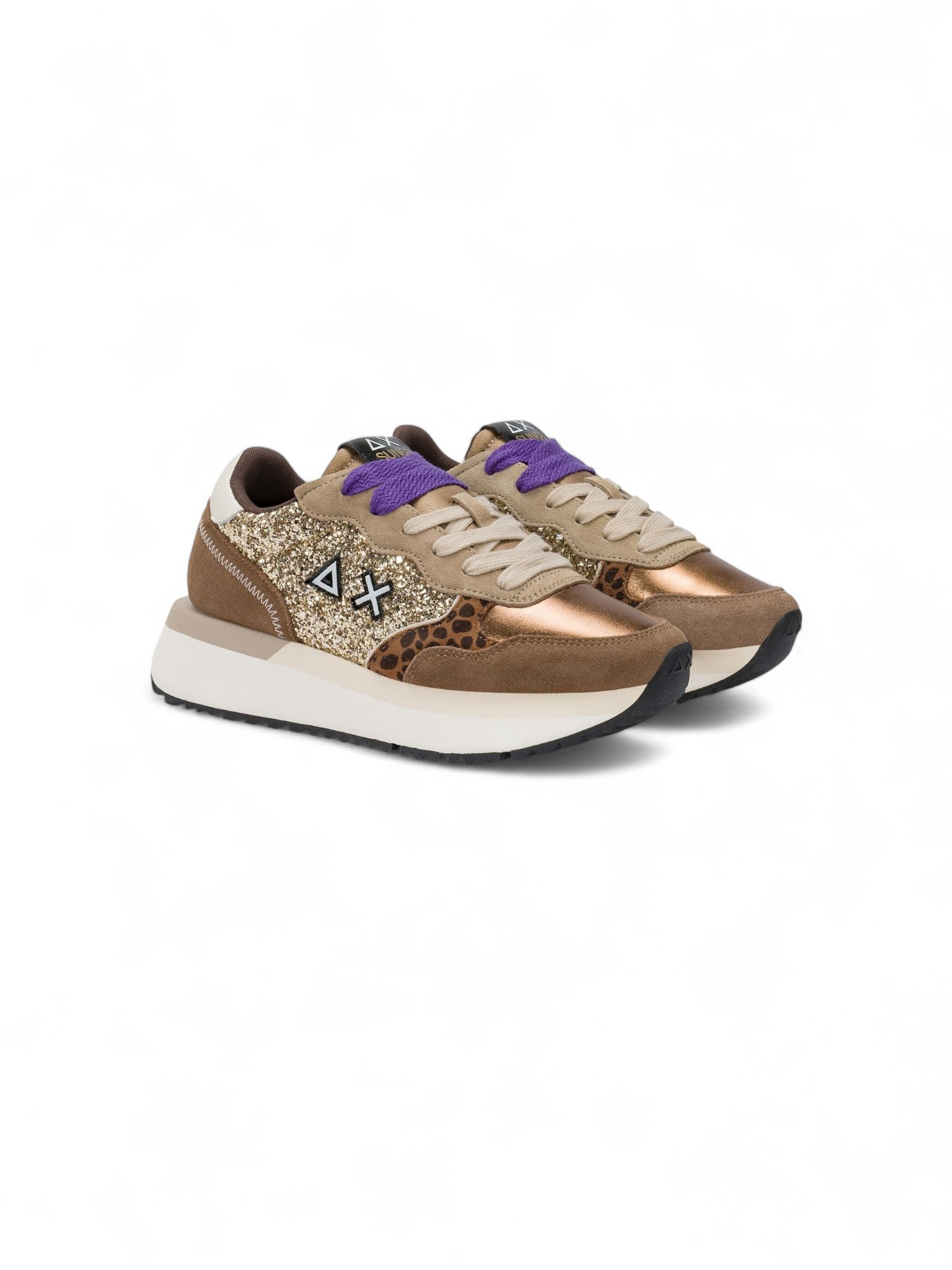 a sneaker Big Ally Glitter dall'attitudine casual chic con l'inserto sui lati tempestato di glitter luminosi. Impreziosita con dettagli logati SUN68 per una nota grintosa. La suola alta in gomma leggera sostiene i movimenti e slancia la silhouette.