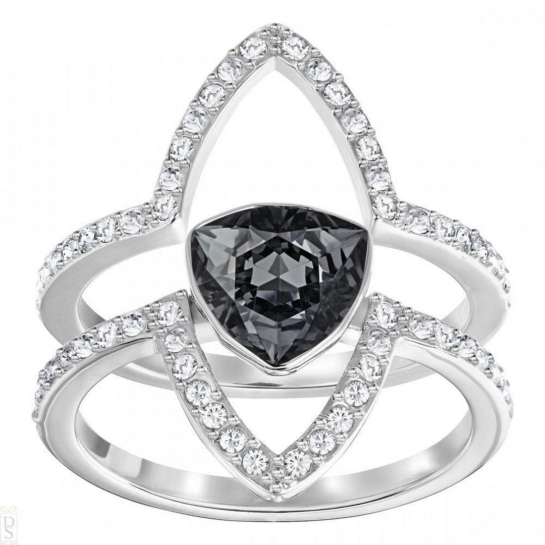 Ispirato alle stelle, questo versatile set di due anelli rodiati può essere indossato separatamente o insieme. Brillano nel pavé di cristallo trasparente e nel cristallo nero glam come punto focale del design. Mescola e abbina con altri anelli Swarovski per un look unico.