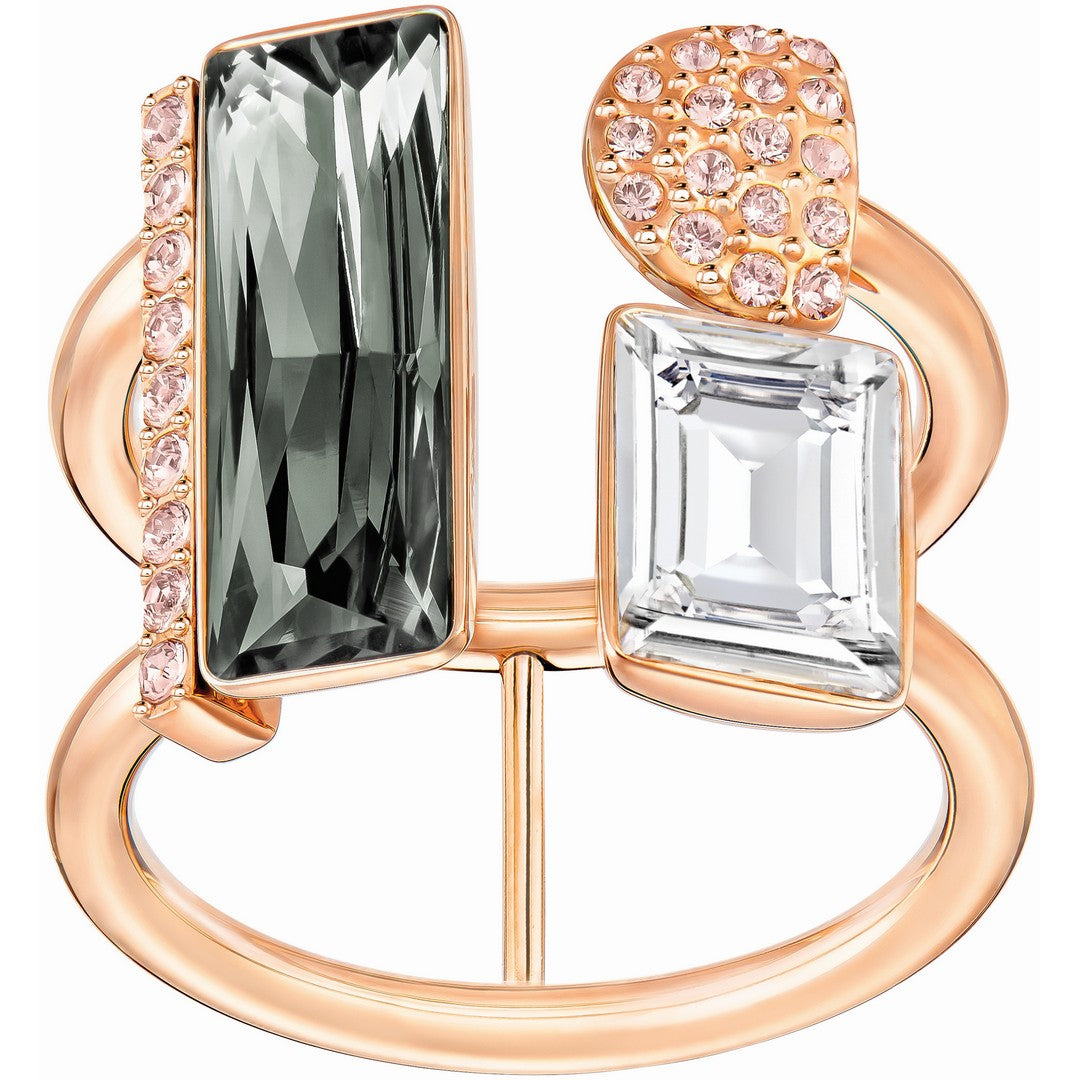 Anello da donna Swarovski della collezione Future Ring. Gioiello realizzato in lega di metalli antiallergica e placcatura oro rosa e cristalli Swarovski di colore bianco e fumè.