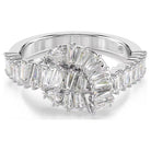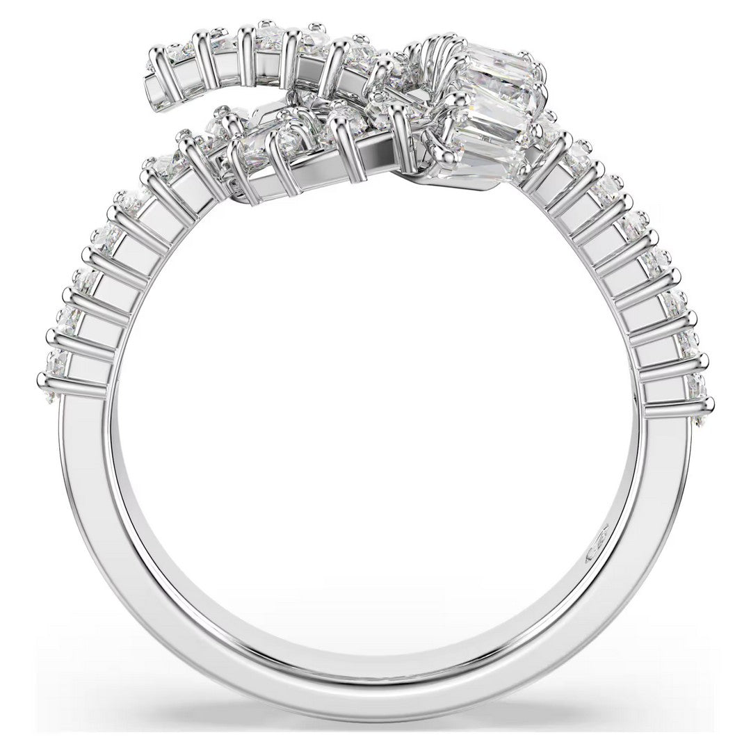 Dona al tuo stile un tocco di luce con questo elegante anello Matrix. Realizzato con un nodo a forma di nastro, il design placcato rodio presenta una sofisticata decorazione di Swarovski Zirconia taglio Baguette, ciascuna incastonata in una montatura a griffe. Moderno e artistico, questo anello si abbina perfettamente ad altri gioielli della stessa famiglia.