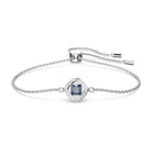 Bellissimo nella sua semplicità, questo bracciale aggiunge un sottile tocco di colore al tuo polso. Presenta una pietra centrale blu scuro circondata da un cerchio di scintillanti cristalli Cry incastonati a pavé in una placcatura rodio. Regola il bracciale sulla misura che preferisci utilizzando la chiusura scorrevole. Un regalo speciale per una persona amata o un gioiello versatile da indossare ogni giorno.