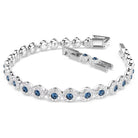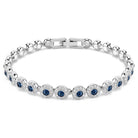Preparati a splendere con questo seducente bracciale tennis della famiglia Una Angelic. Realizzato con un extender regolabile, il design placcato rodio è formato da un'unica fila di cristalli taglio Round in una vivace tonalità blu, impreziosita da un luccicante pavé. Indossalo con la collana coordinata e preparati a lasciare tutti senza fiato.
