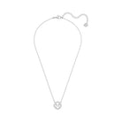 Collana donna girogola con pendente forma di fiore centrale e cristalli bianchi montati su base rodiata catena sottile; lunghezza regolabile con chiusura moschettone
