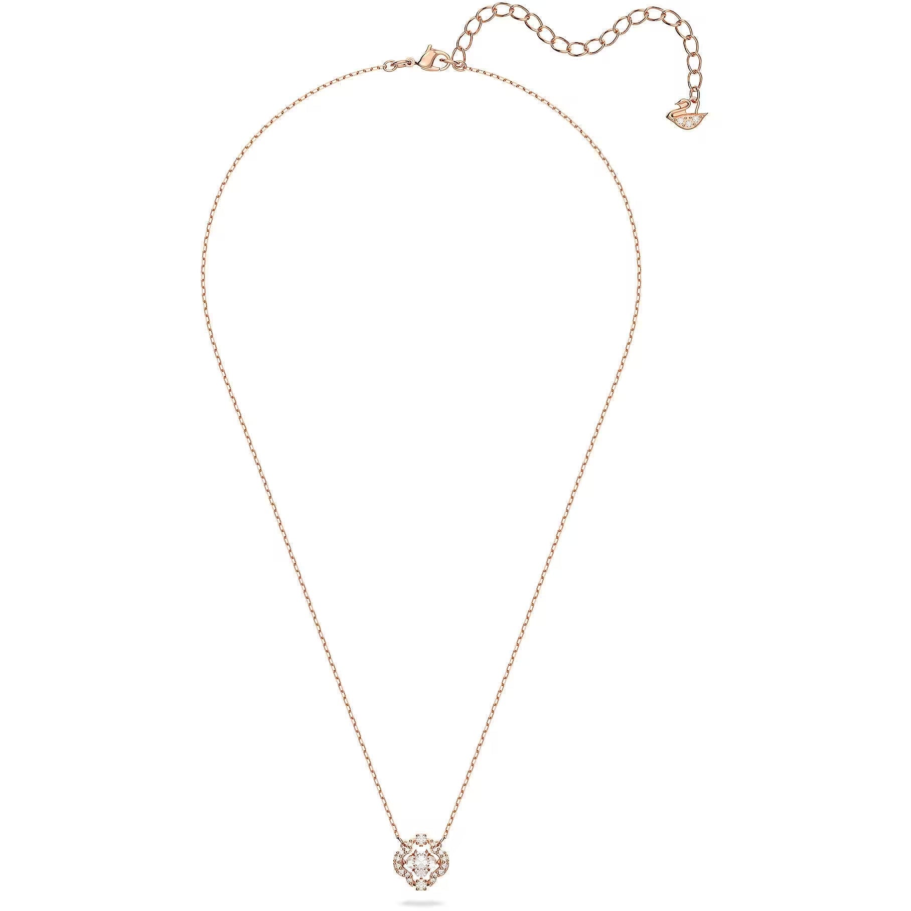 Collana da donna di Swarovski della collezione sparkling dc. Collana di colore oro rosa con cristalli bianchi. Assicurati che la fortuna sia sempre dalla tua parte con questa elegante collana. Presenta una brillante pietra trasparente a forma di quadrifoglio che "danza" nella montatura, ed è rifinita con una catena placcata color oro rosa. Impreziosisci il tuo look con questo gioiello e accarezza la fortuna. Lunghezza minima: 38 cm. Lunghezza massima: 42 cm. Larghezza: 1. 1 cm. La referenza è 5642928