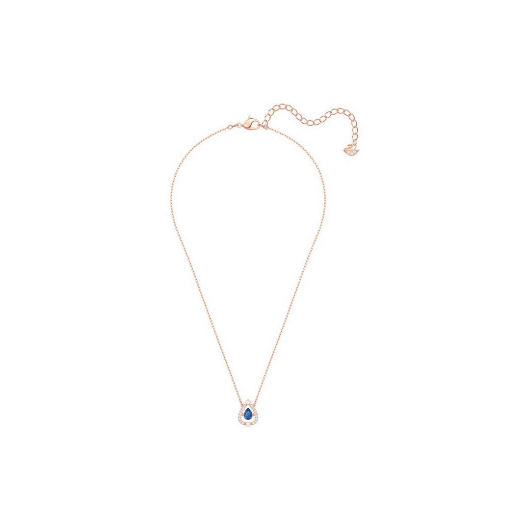 Collana Swarovski Sparkling Dance - 5465281 Un'idea regalo perfetta, questa collana senza tempo placcata oro rosa è ispirata all'idea di un 'dancing crystal'. Il sontuoso design presenta una pietra blu brillante a forma di goccia all'interno di una struttura tridimensionale in pavé di Clear Crystal. Immancabile in ogni collezione, aggiunge un divertente scintillio agli stili eleganti.