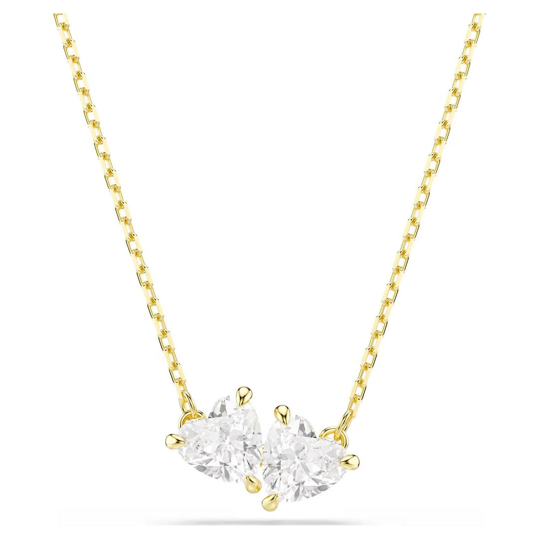 Questa collana Swarovski della famiglia Mesmera offre un design classico con una rivisitazione moderna. Impreziosito da splendide Swarovski Zirconia a forma di doppio cuore, il design è completato dalla placcatura in tonalità oro e dall'eleganza discreta della sua catena. Questa affascinante collana è il perfetto regalo romantico per la persona che ami.