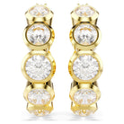 Eleva al massimo la tua eleganza con questi splendidi mini cerchi. Le creazioni placcate in tonalità oro sono magistralmente realizzate con un cerchio di Swarovski Zirconia taglio Round, ognuna incastonata in una moderna montatura a castone e presentata in una gradazione di dimensioni. Un paio perfetto per una raffinatezza quotidiana, o una scelta radiosa per il glamour serale.