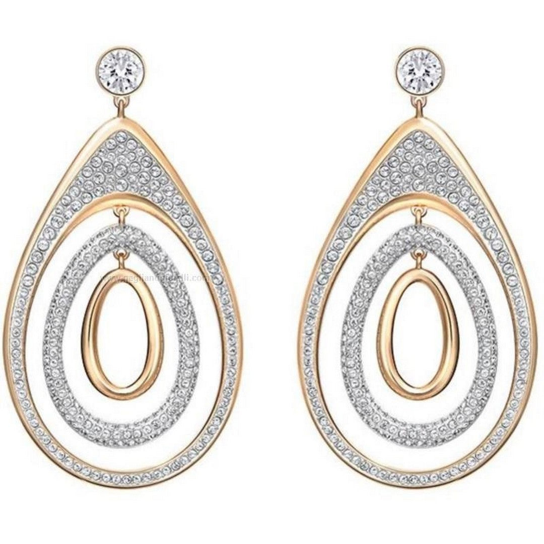 Orecchini Swarovski della collezione Every , in lega metallica color oro rosè e cristalli swarovski bianchi