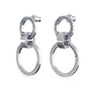 Scegli questi eleganti orecchini Hollow per un'interessante alternativa al classico stile a cerchio. Ogni gioiello presenta tre anelli interconnessi placcati rodio e decorati con un pavé di cristalli blu dal taglio Round. Moderni e di grande effetto, questi orecchini sono perfetti per esaltare al massimo qualsiasi look.