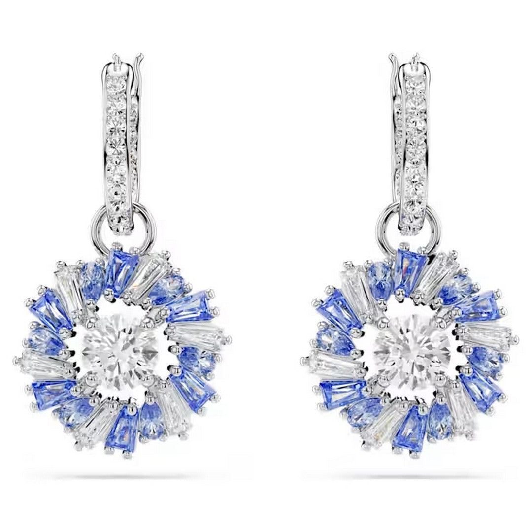 Questi energizzanti orecchini Idyllia, con la loro stimolante miscela di colori, sono una squisita dimostrazione del savoir-faire Swarovski. Ogni creazione placcata rodio è fissata su un mini cerchio impreziosito da cristalli Cry e presenta un fiore vibrante, accuratamente lavorato con Swarovski Zirconia blu e trasparenti. Uno Swarovski Zirconia fisso al centro cattura la luce da ogni angolazione. Indossa questi orecchini per elevare immediatamente il tuo stile.