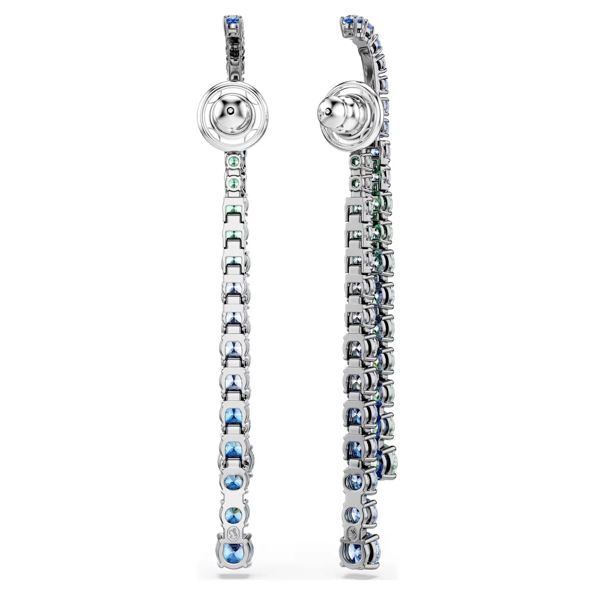 Aumenta l'intensità con i vivaci orecchini Swarovski. Ciascun gioiello placcato rutenio presenta due fili di cristalli, disposti con un'intensa sfumatura di cristalli che va dal turchese al blu. Indossali con la collana Matrix Tennis abbinata per creare il set perfetto per non passare mai inosservato/a.