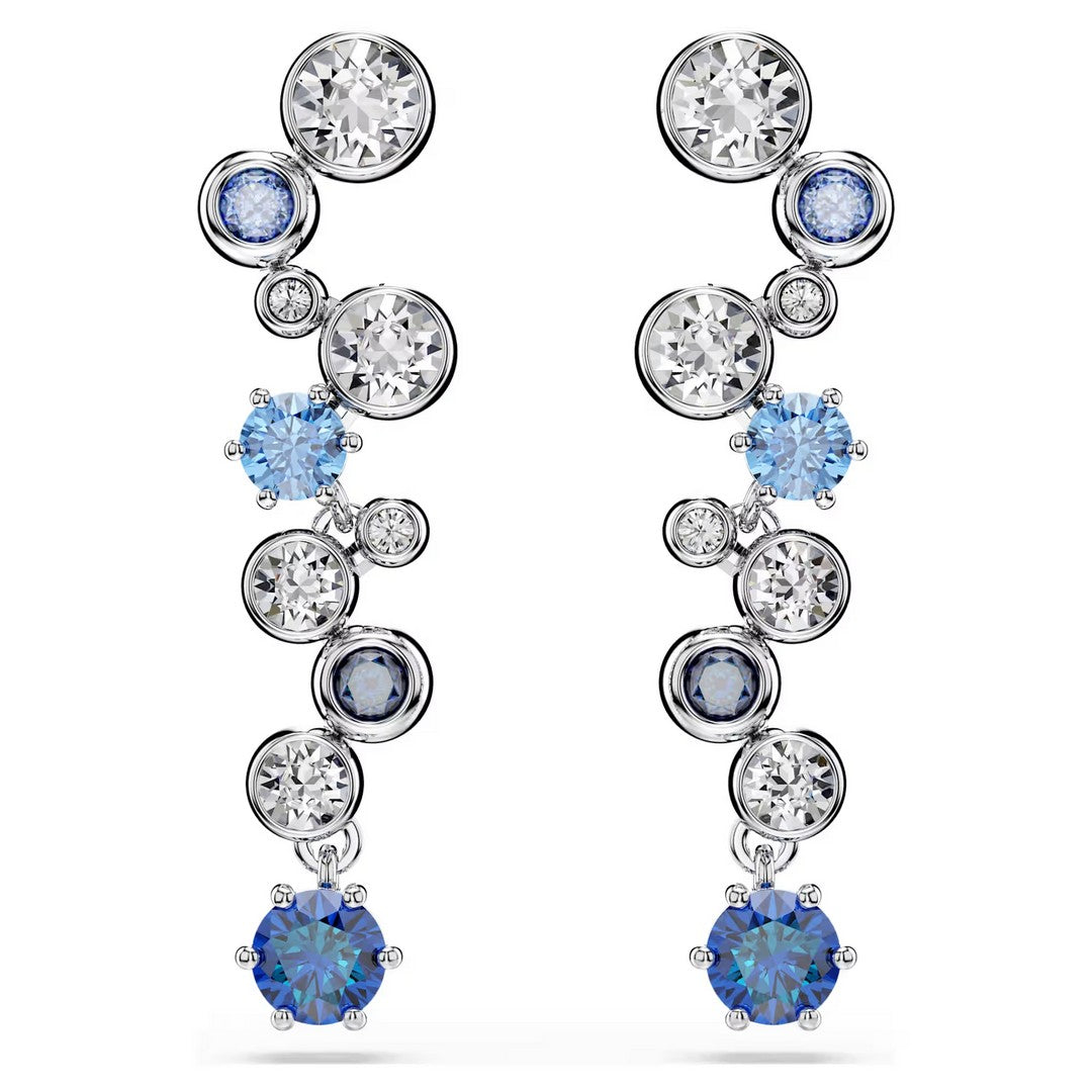 Questi orecchini Constella, che ricordano un cielo stellato, sono una scelta unica per una vivace espressione personale. I fili placcati rodio presentano cristalli Cry e Swarovski Zirconia blu in varie dimensioni e tonalità, ciascuno con montatura a griffe o a castone. Indossali insieme alla collana Constella coordinata per massimizzare la luce e il colore nel tuo guardaroba.