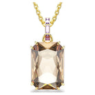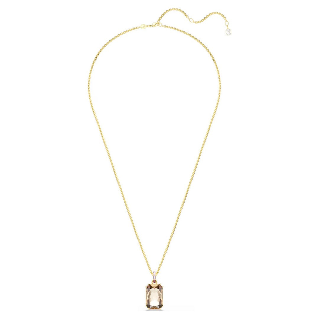 Questo luminoso pendente Millenia è una creazione di puro calore e lusso. Il motivo centrale è realizzato con un grande cristallo color caramello con una montatura a griffe doppia e si collega alla catena placcata in tonalità oro tramite un elegante passante impreziosito da cristalli viola con montatura a binario. Abbina questo pendente ad un paio di orecchini o a un bangle coordinati per esprimere un look ultra-moderno.