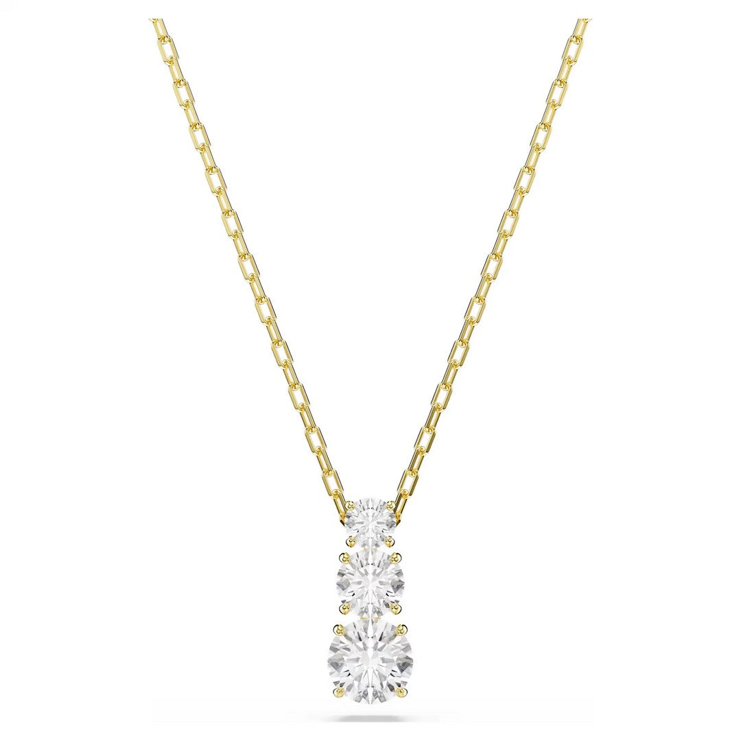 Ispirato al concetto di amore eterno, questo romantico pendente è di un'eleganza intramontabile. Il trio di Swarovski Zirconia trasparenti è maestosamente sospeso da una catena placcata in tonalità oro, creando un gioiello ricco di emozione. È il regalo perfetto per una persona cara e può essere indossato con un paio di orecchini a buco o un anello coordinati.