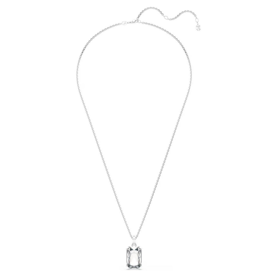 Con l'emblematico stile Millenia, questo luminoso pendente è una pura creazione di luce. Il motivo centrale è realizzato con un grande cristallo Cry in una doppia montatura a griffe e si collega alla catena placcata rodio tramite un elegante passante impreziosito da cristalli montati a binario. Una scelta affascinante per amplificare la tua luce quotidiana.