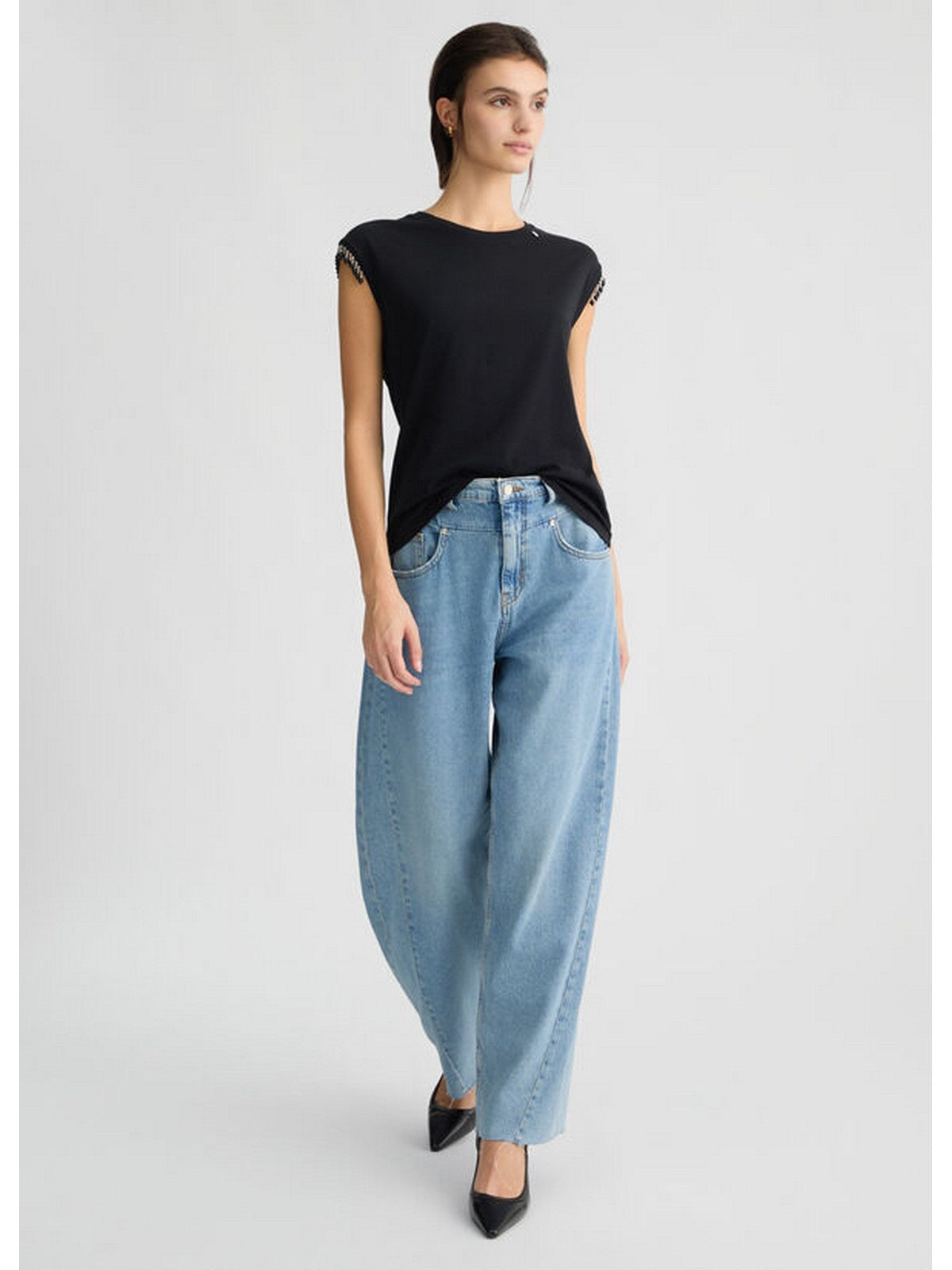 T-shirt Donna Liu Jo - T-shirt in jersey con perline - Nero