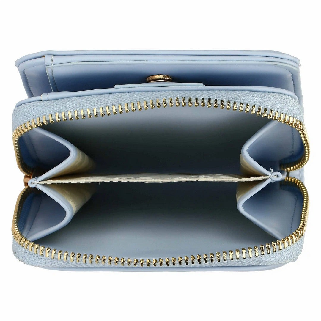 Questo portafoglio da donna in ecopelle azzurro, di dimensioni compatte, è la scelta ideale per chi cerca praticità senza rinunciare allo stile. Nonostante le sue dimensioni contenute, offre un buon spazio per carte, banconote e monete, mantenendo un design semplice ed elegante. Il colore azzurro dona un tocco di freschezza, rendendolo perfetto per l'uso quotidiano. Facile da riporre in borse di dimensioni contenute, è l'accessorio ideale per chi desidera un portafoglio che combini ordine, funzionalità e un tocco di raffinatezza.