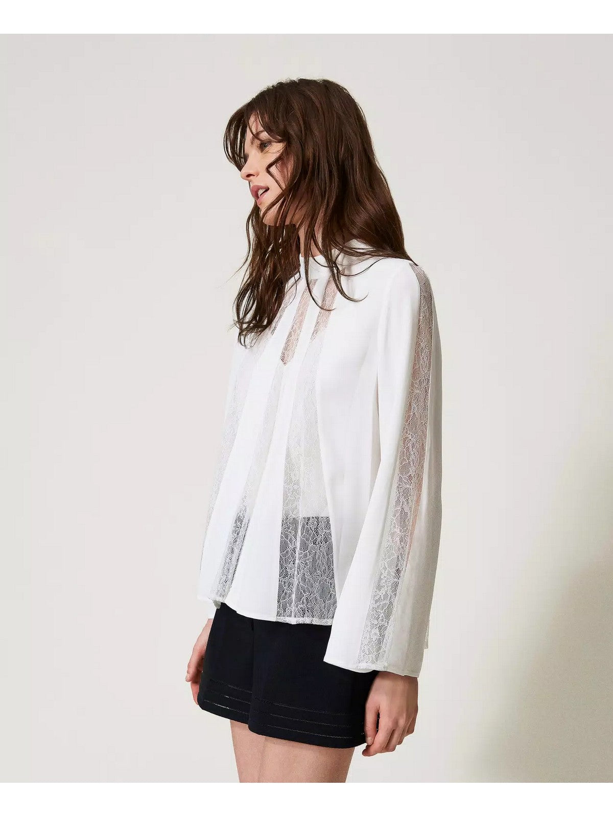 Blusa TWINSET in crêpe di viscosa con inserti in pizzo leggero a disegno floreale